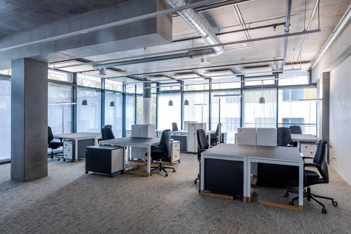Built for purpose, on the St. Jakobs-Strasse 54 in Basel, DENKMAL reflects a quiet confidence. Its clear lines, terrazzo mosaic flooring, and gently curved stairwell show how utility and care can coexist naturally. Flooded with natural light and surrounded by mature trees, the space feels grounded and inviting. A calm, characterful backdrop for focused work.